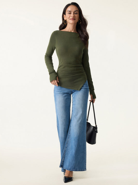 coco | Moderni Brami top s nabranim stranama i brodskim izrezom