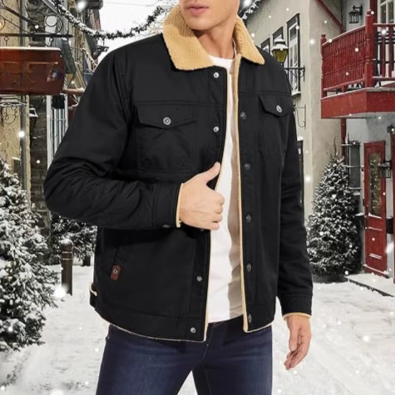 Klassisches Design mit einem modernen Touch: Ein robuster, eleganter Look mit einem kuscheligen, mit Sherpa gefütterten Kragen, der perfekt zu lässigen und raffinierten Outfits passt.