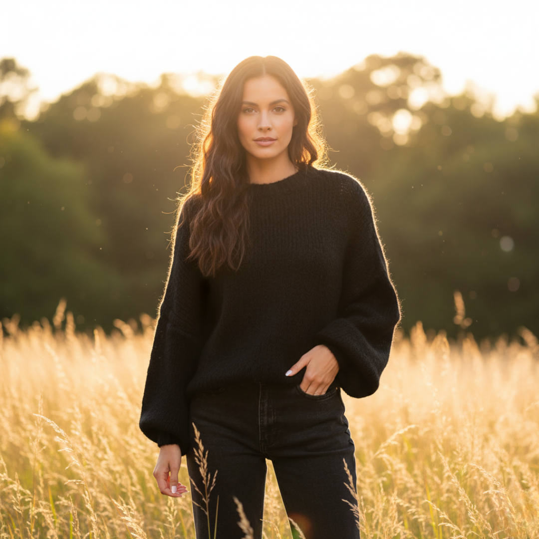 Poznaj Coco – granatowy sweter z wełny, który łączy miękkość, komfort i ponadczasowy styl. Idealny na chłodniejsze dni, kiedy chcesz wyglądać elegancko i czuć się komfortowo.