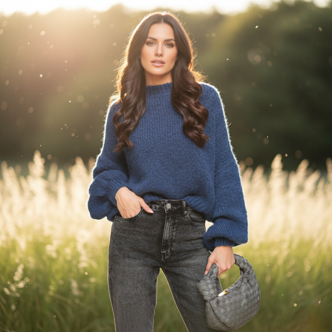Upoznajte Coco – mornarsko plavi vuneni džemper koji kombinira mekoću, udobnost i bezvremenski stil. Savršen za hladnije dane kada želite izgledati elegantno i osjećati se ugodno.